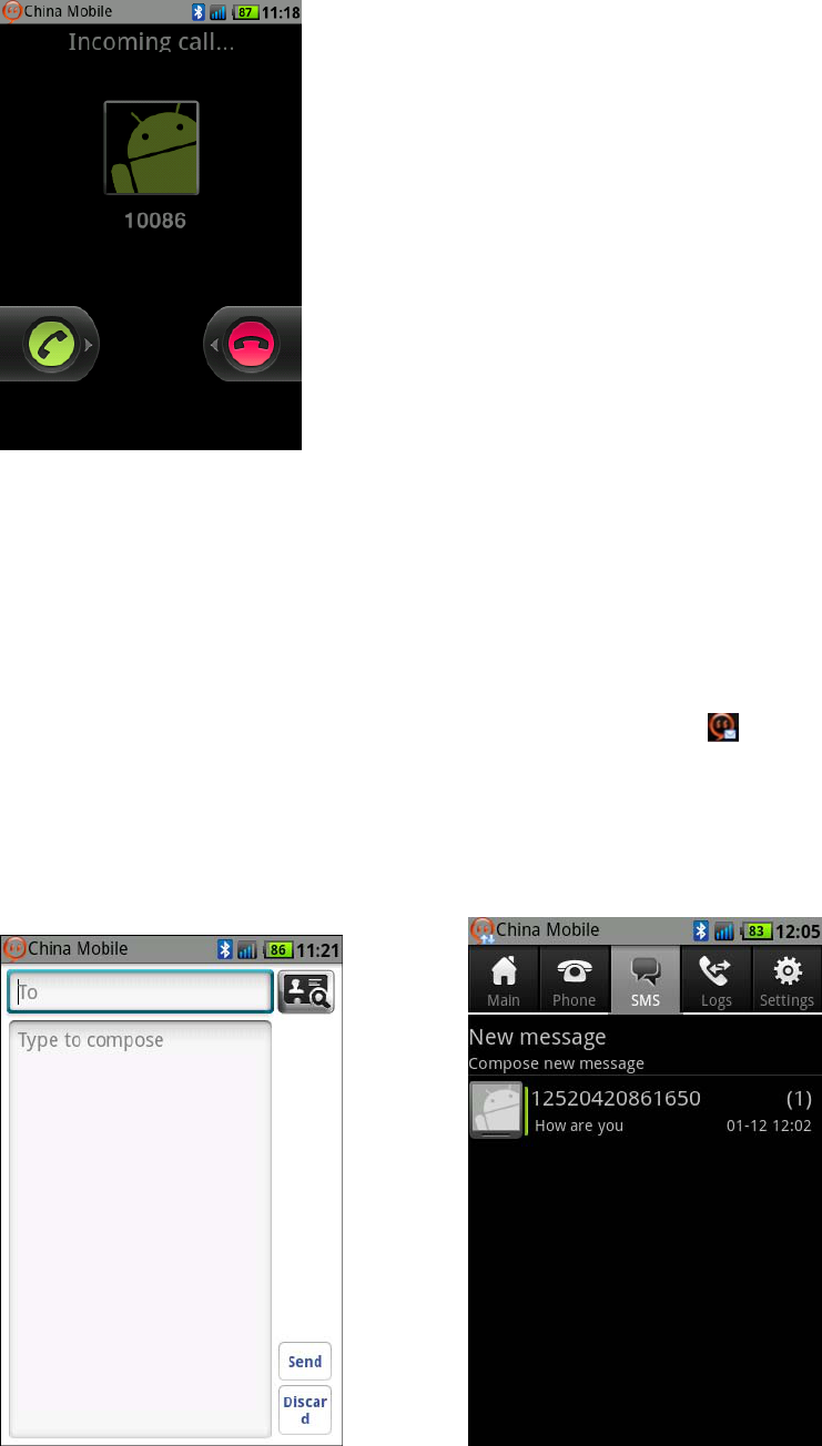 C) Receiving Calls: When receiving an incoming call, the client will ring and remind the user of a new coming