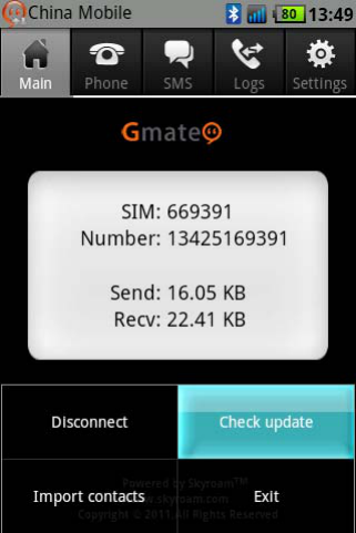 Note: At present, Gmate+ only supports SMS but not MMS (multimedia message sending) function.