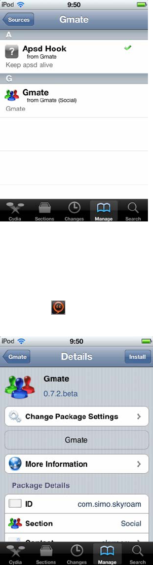 http://m.skyroam.com/cydia will now appear in the list. From the list locate and select Gmate to