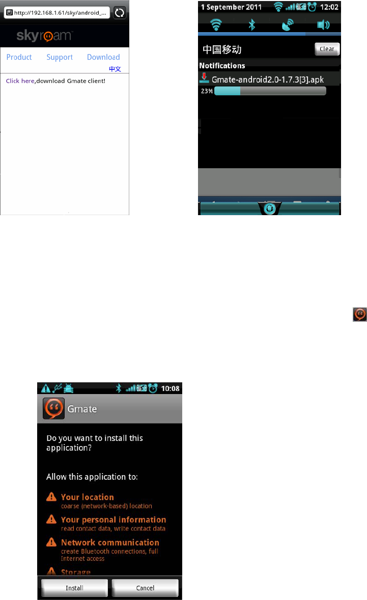 B) Open the status bar, and click Gmate to install, or open File Management-> Download to locate the installer,