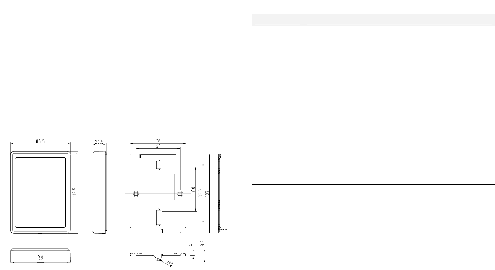 Temperature -30ºC~70 ºC Number pad