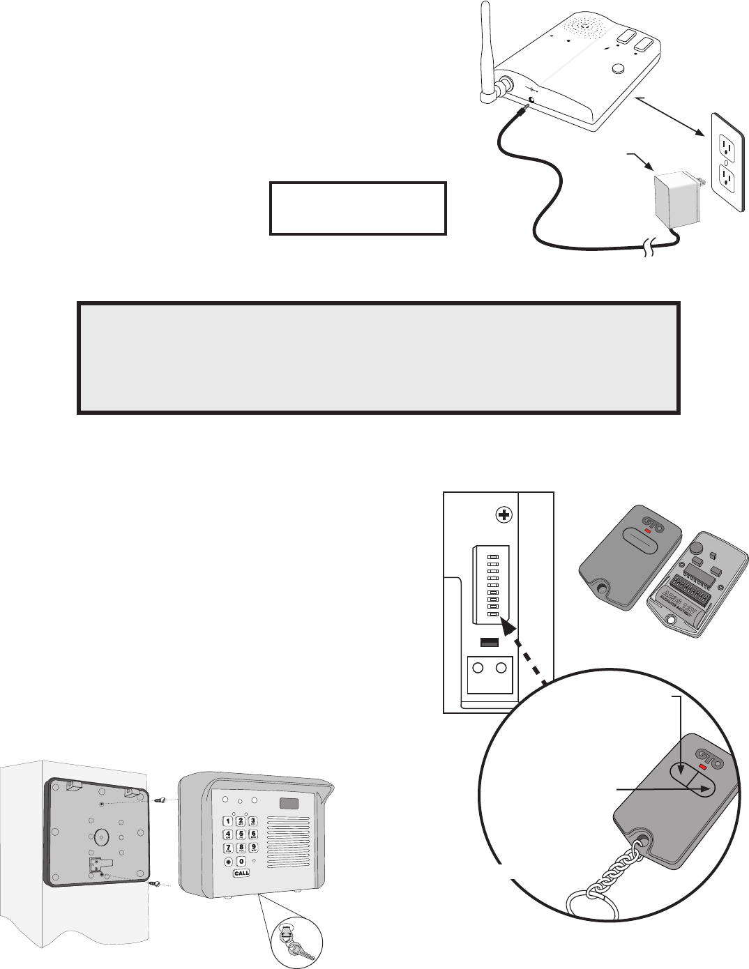 NOTE: The keypad, not the base station, initiates the call and operates the gate. The base station is for answering