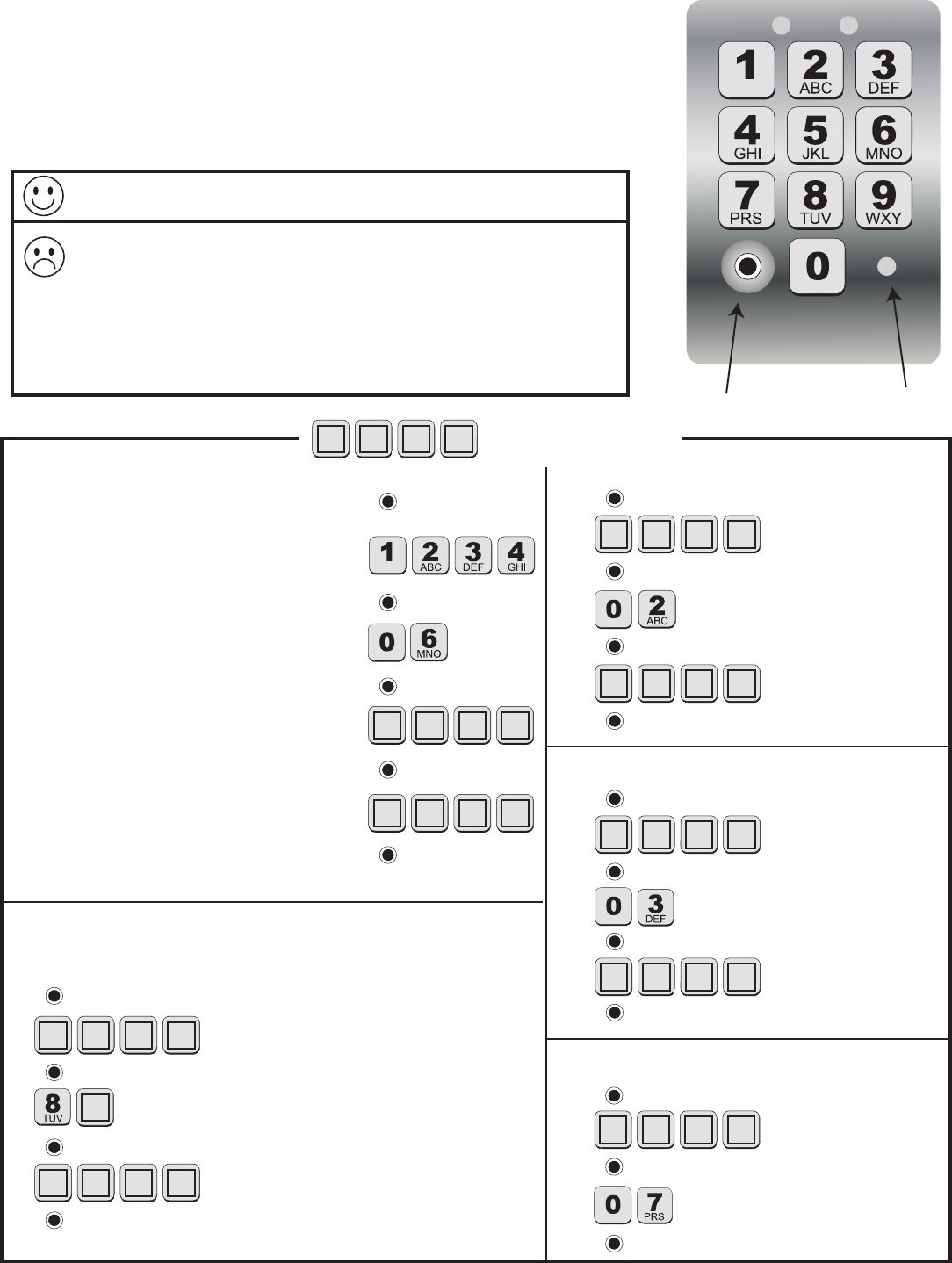 •Whenavalidcodeisentered,theSTATUSlightwillblinkrapidly,thekeypadwillbeepthreetimes,andtheGRANTED