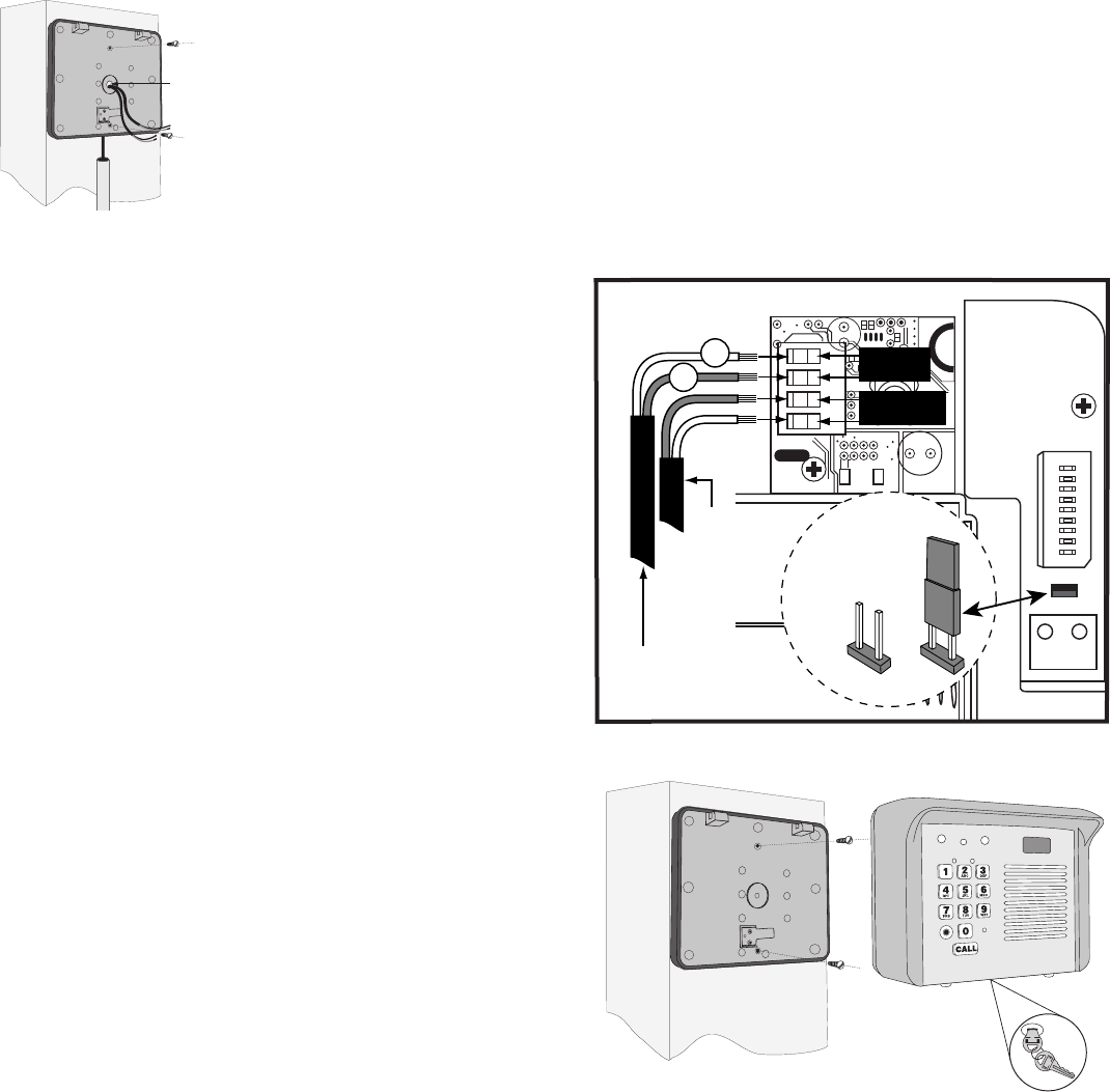 the screws provided. Run wire through PVC pipe from the ground to keypad and from the