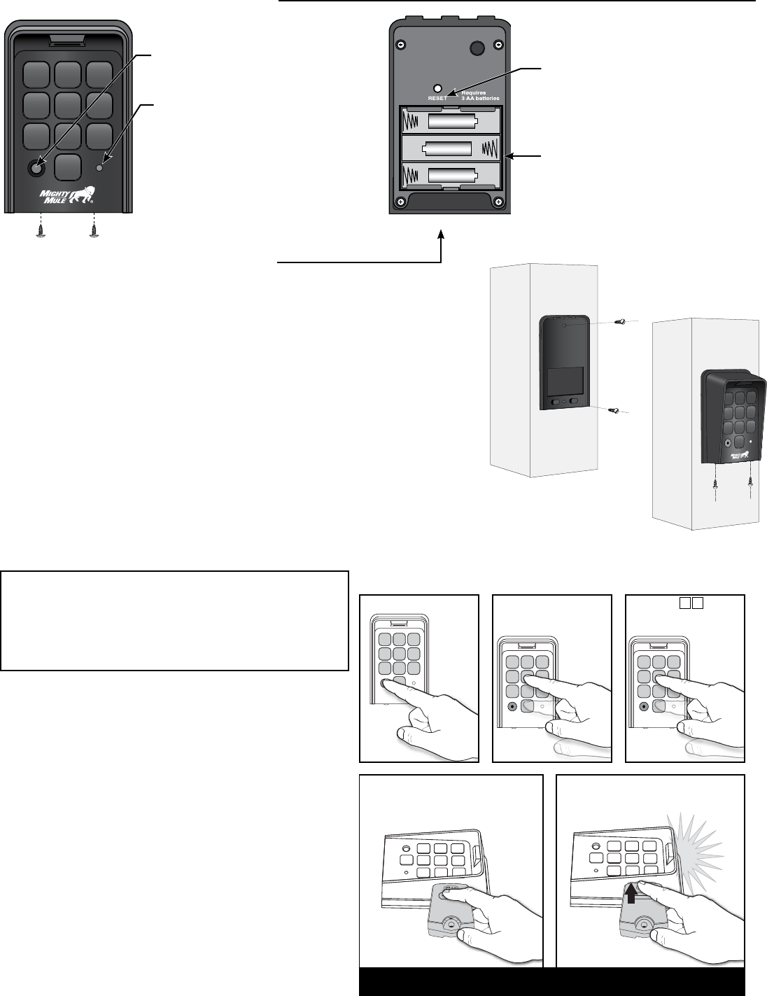 NOTE: The distance from the keypad to the opener’s receiver should not