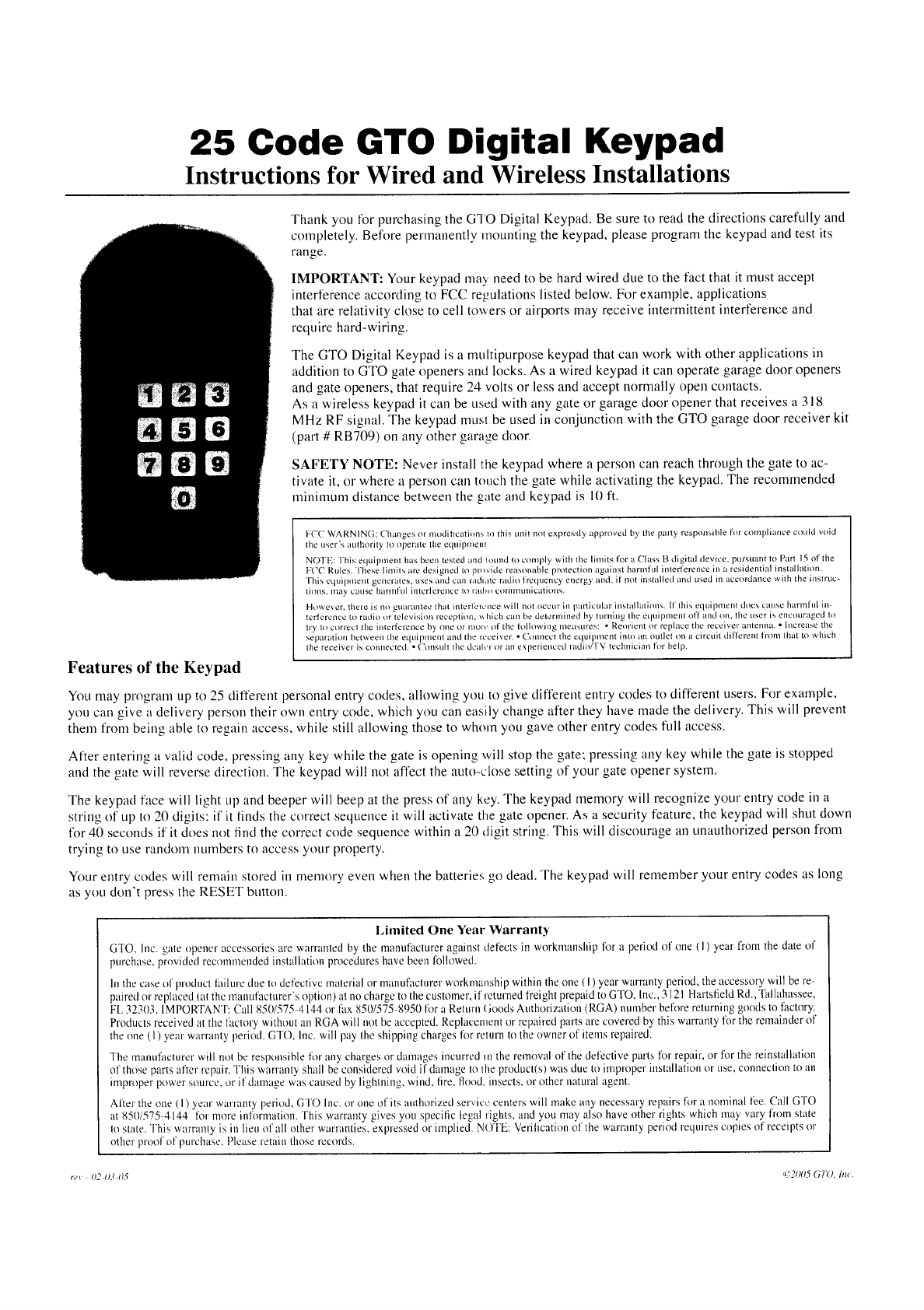 Smart Technologies and Investment SMARTECRF1253 Digital Keypad (Transmitter) User Manual