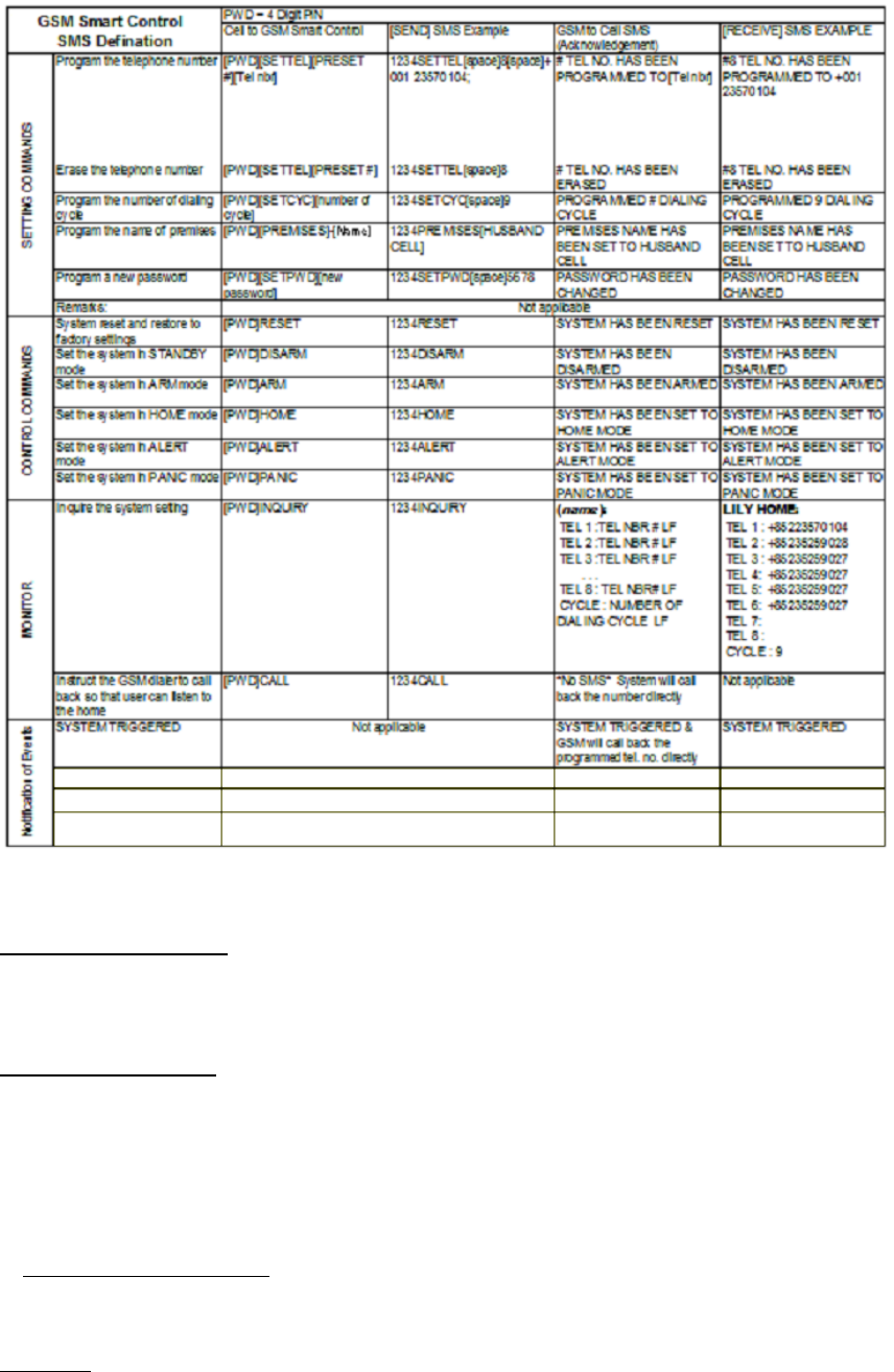 g) GSM password – input the GSM Smart Control’s security PIN. You must enter the default PIN “1234” on the