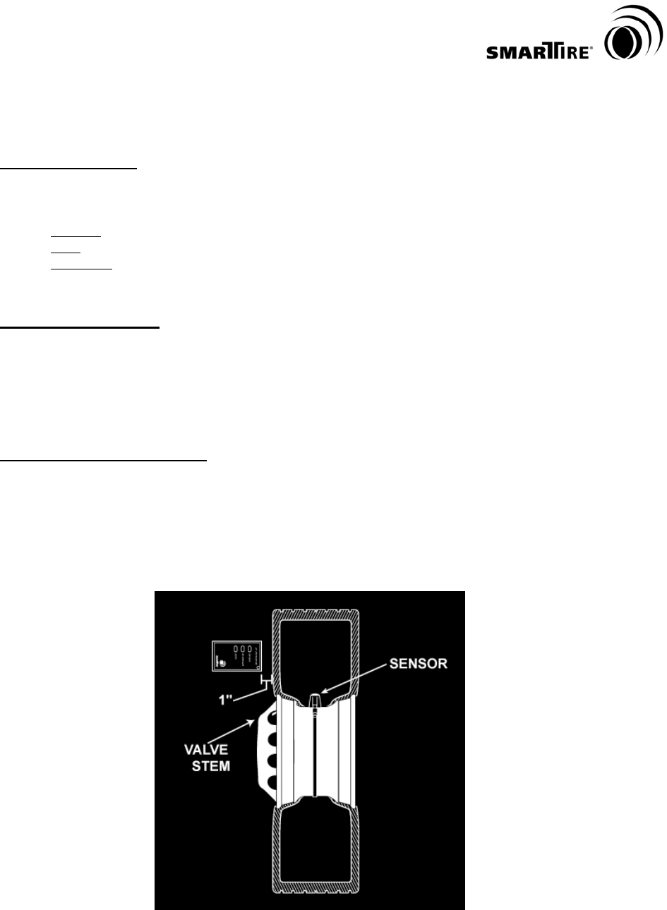 (SmarTire sensors should be installed at the valve and their location should also be indicated by a