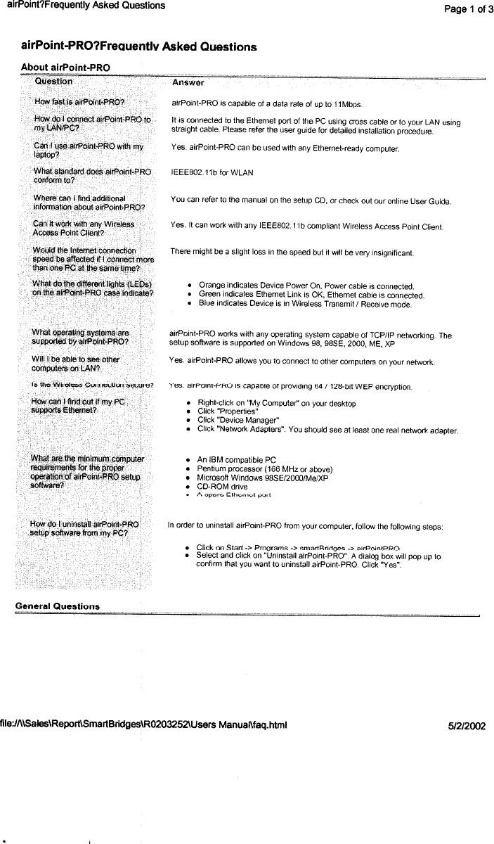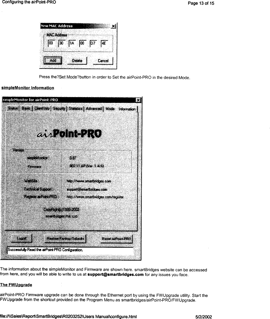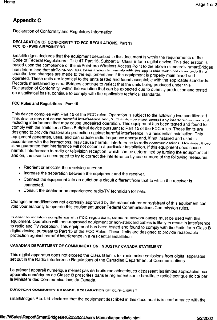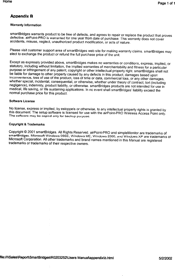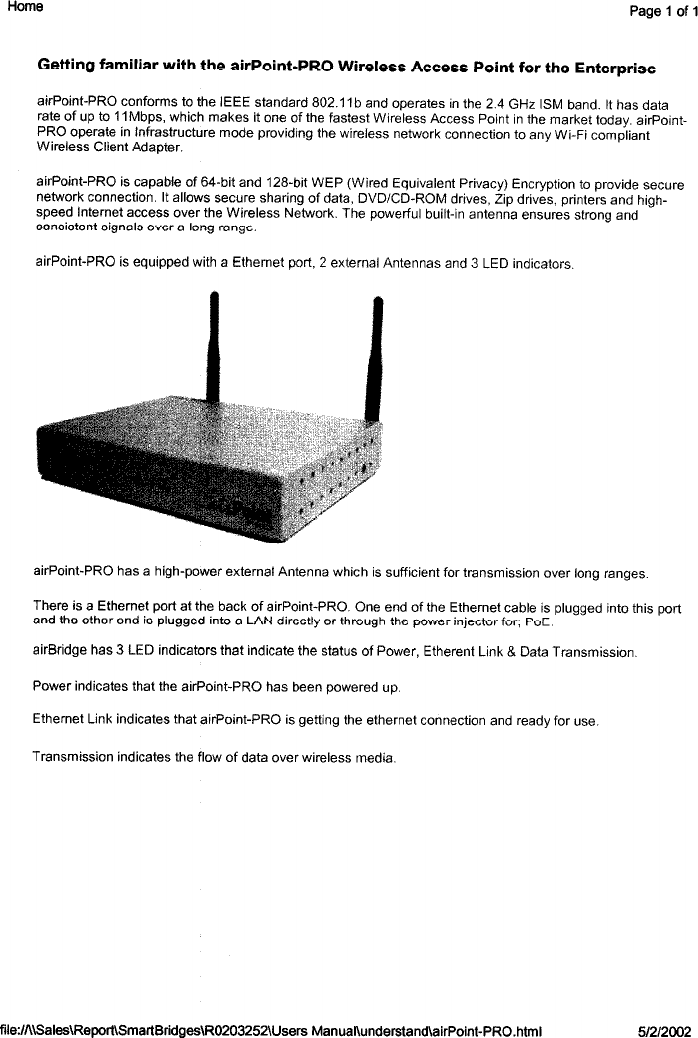 SmartBridges AIRPOINTPRO Wireless AirPointPRO User Manual S