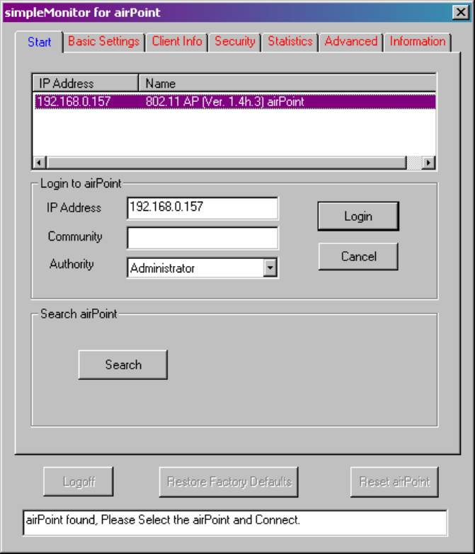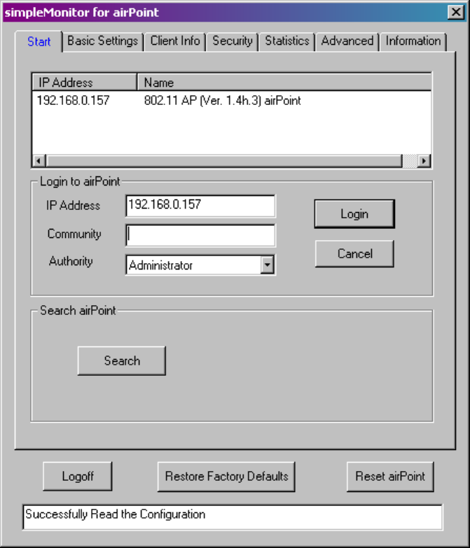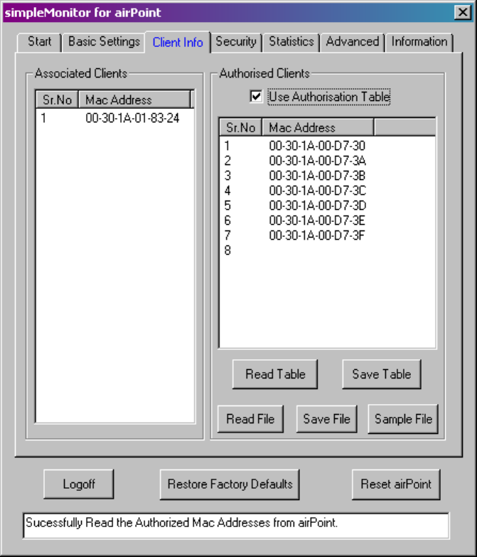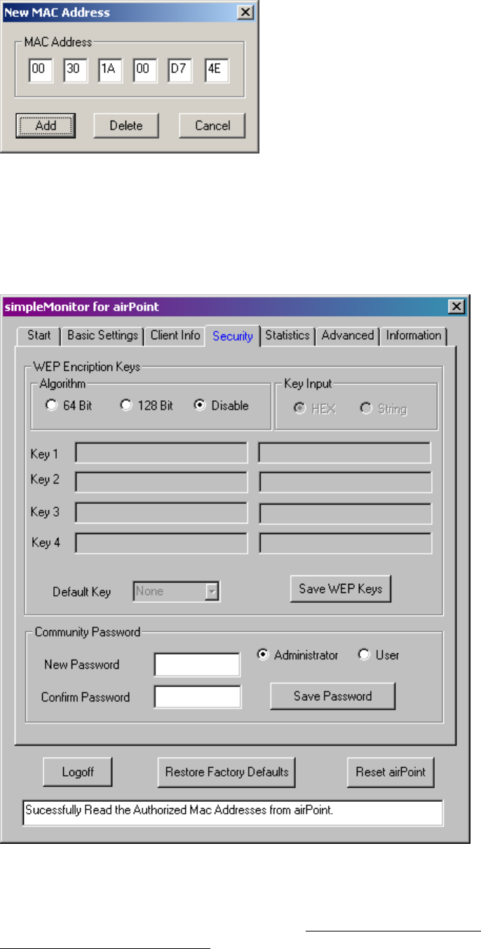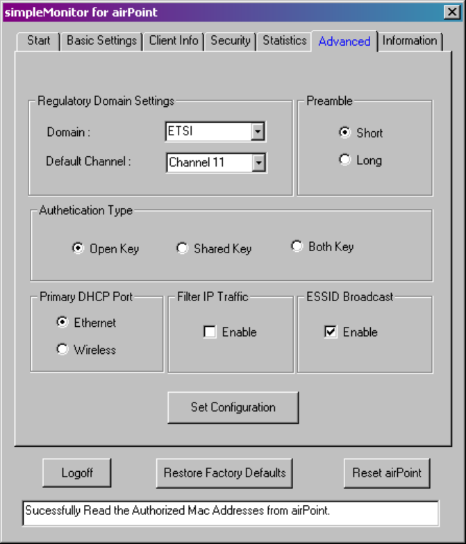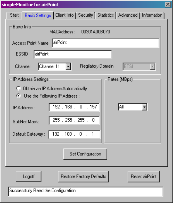 additional parameters ( like WEP Keys ) please install the setup Software.