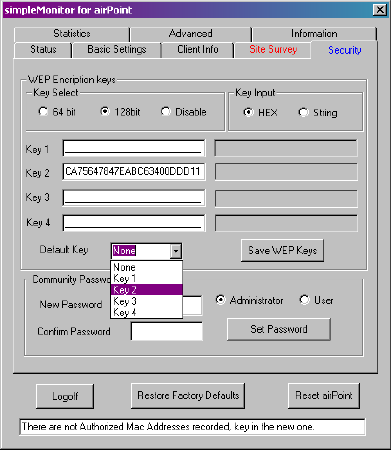 • Select the Desired Encryption Key(64Bit/128Bit).