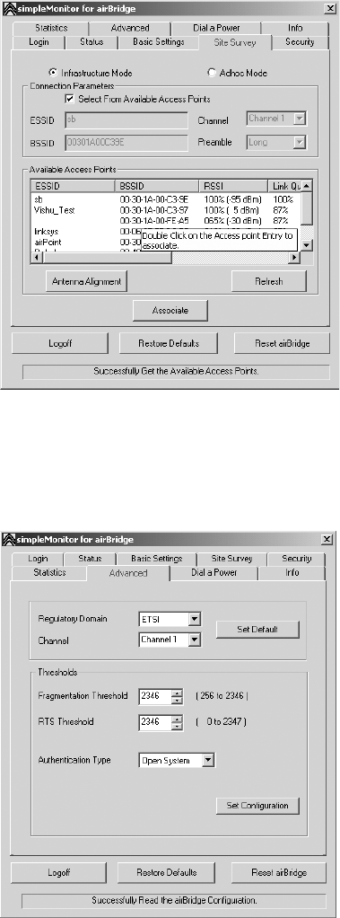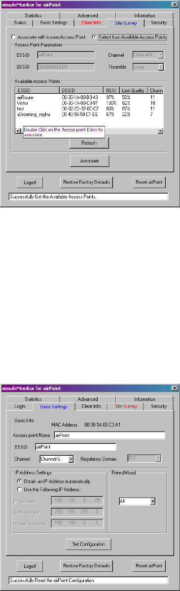 Available Access Points" option. Double click on the desired Access Point Entry. After