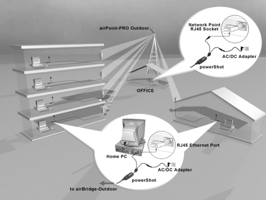 airPointPRO TOTAL can be used as Access Point or as Client Bridge or as Wireless Bridge .The home