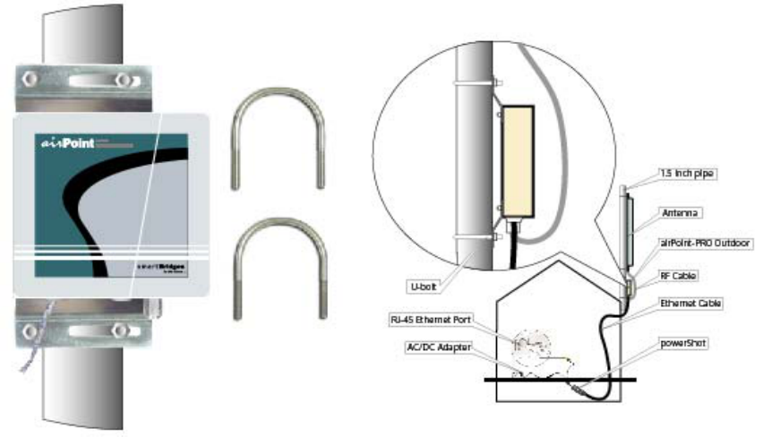 steel pipe. Antenna should be mounted on the same pipe as the airBridge TOTAL and positioned