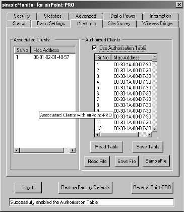 2. airPoint TOTAL is authorised to associate with the desired Access Point.