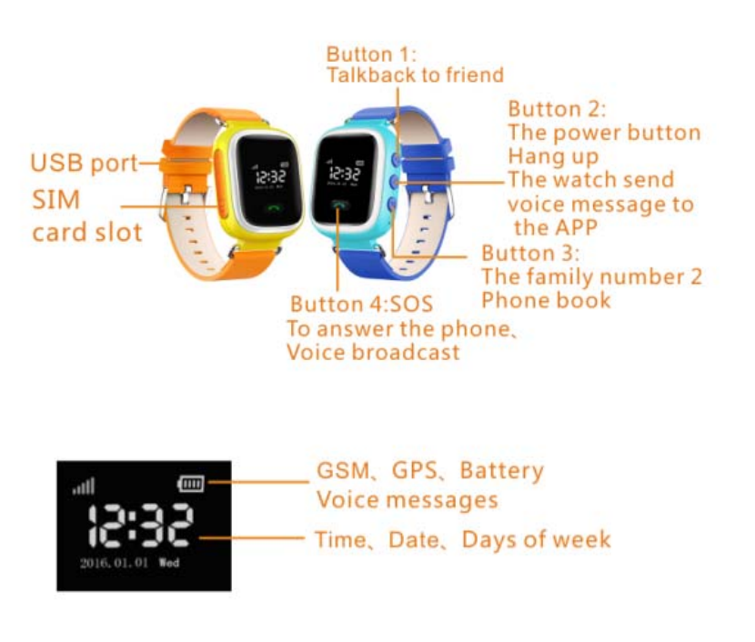 Button 4:If the APP have setting SOS number, long press SOS button for dialing, if got no answer,