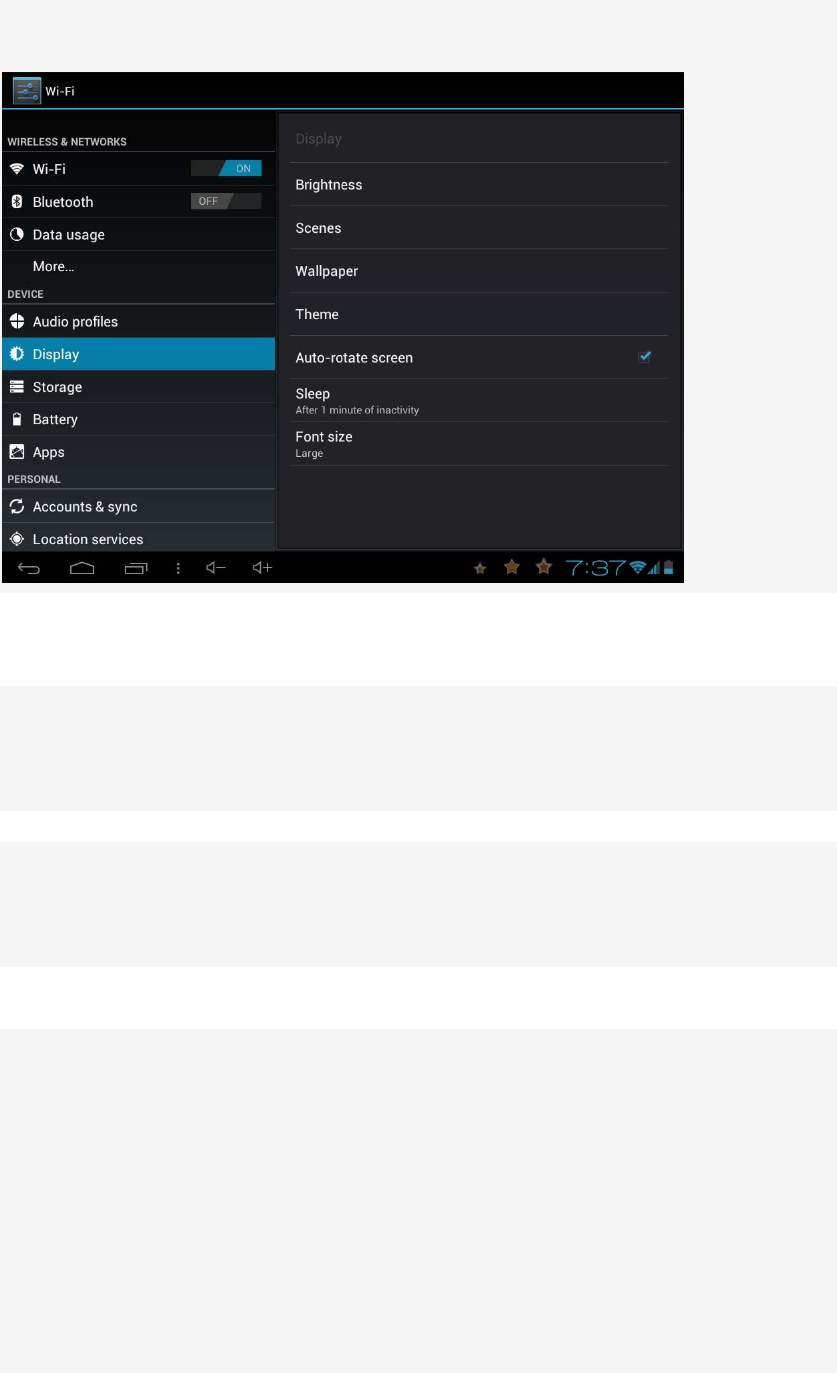 G-SENSOR can be turned on or off from the "Display" in the "Settings", and auxiliary