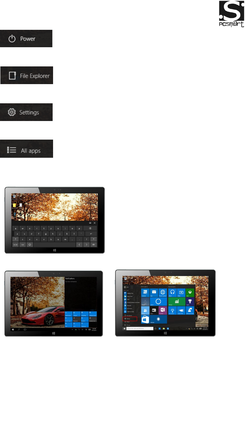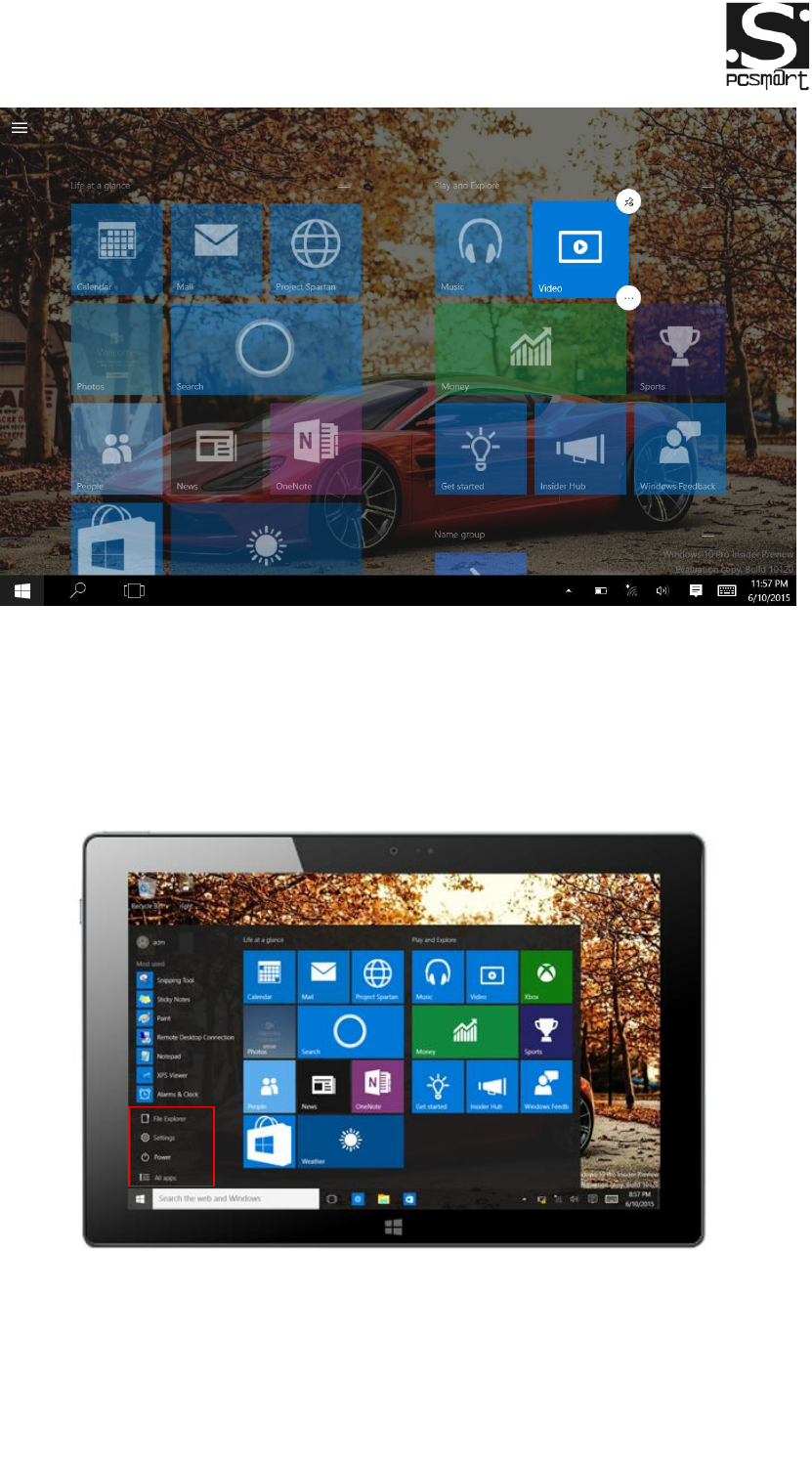 Under PC mode, press Start ion, Start Menu will display, including: Start,