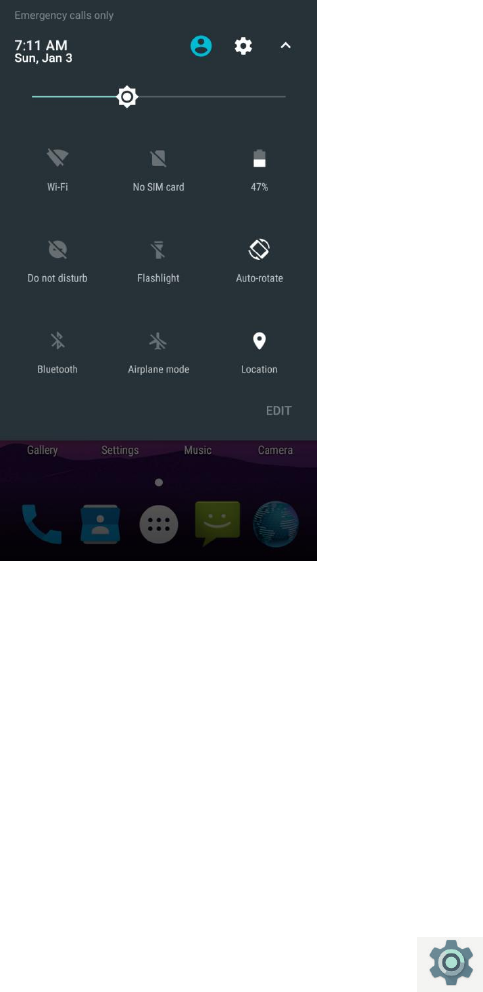 brightness, auto rotation, Wi-Fi, Bluetooth and more.