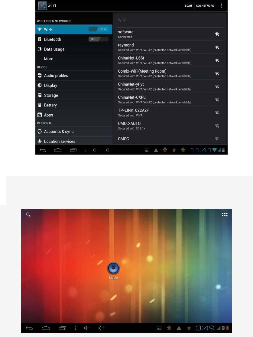 Turn on the WIFI in "Settings" menu, click search, select the available network and