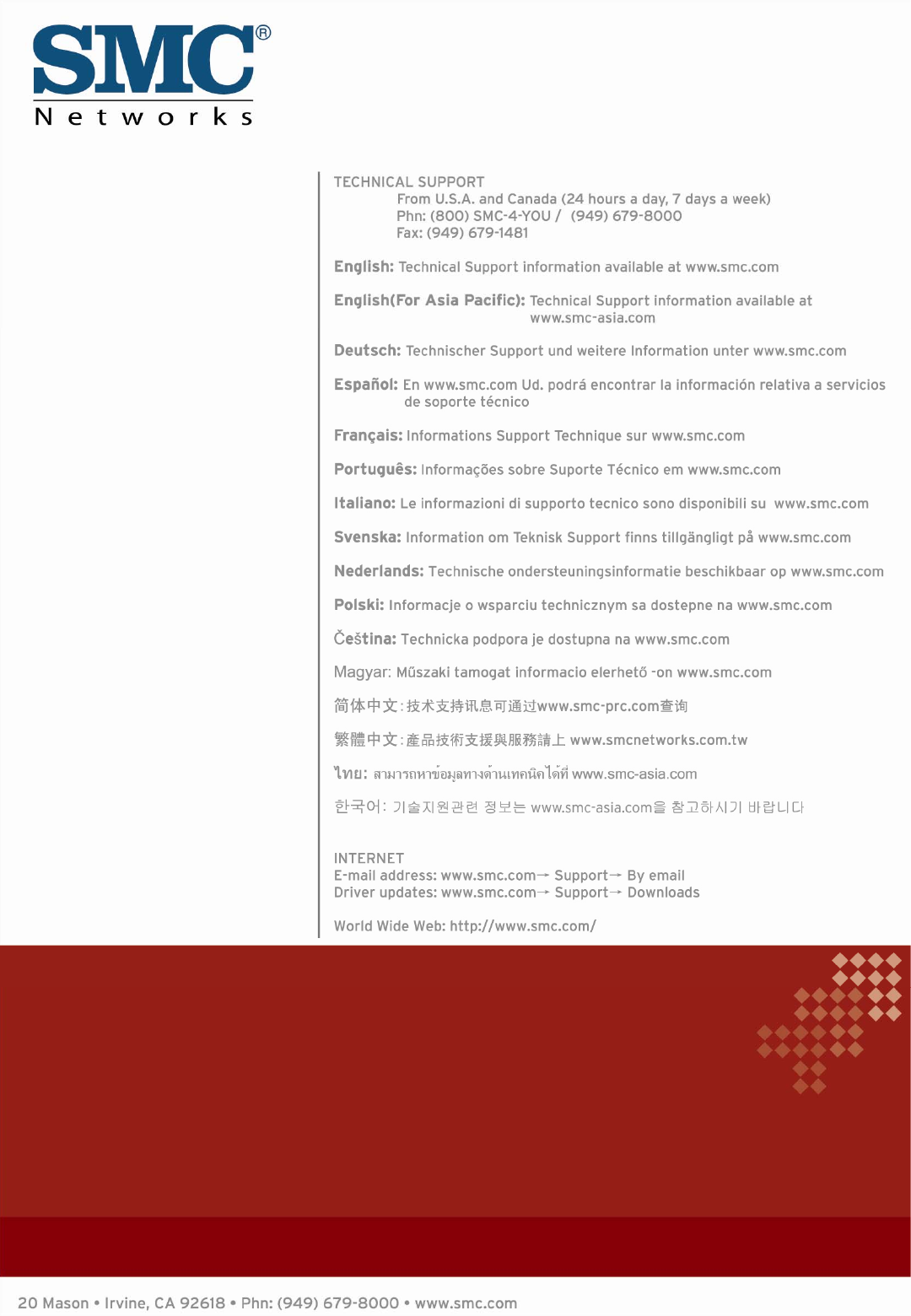 To register SMC product and to review the detailed warranty statement, please refer to the