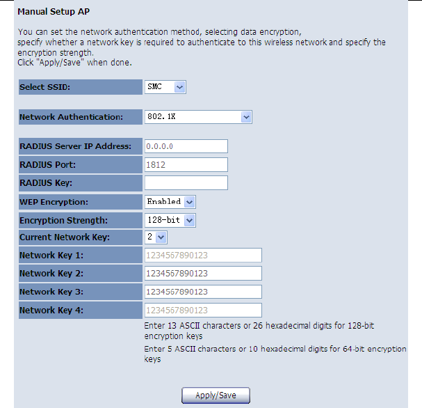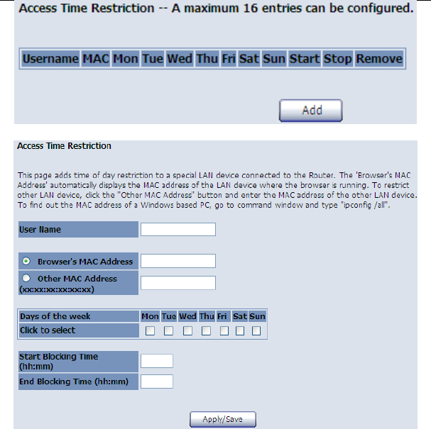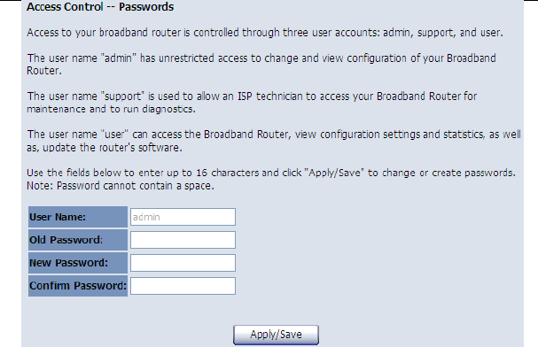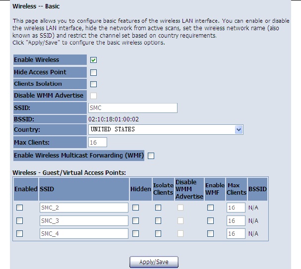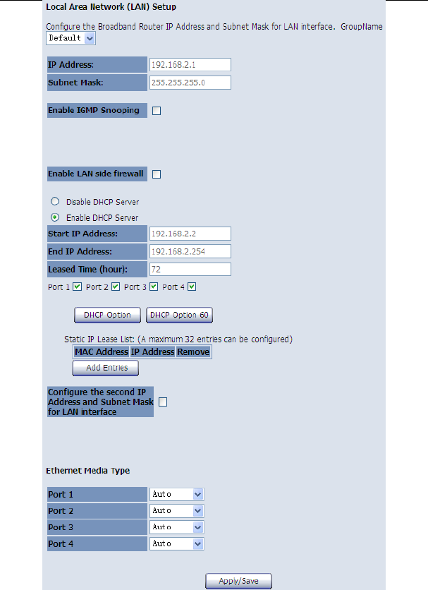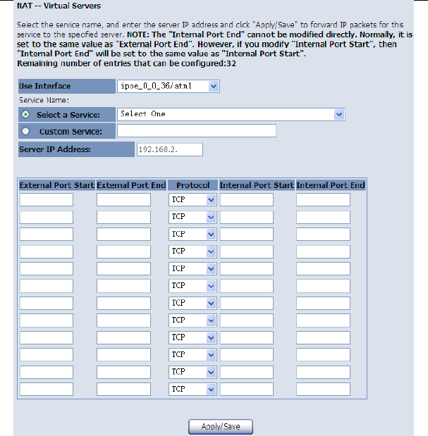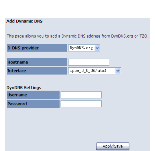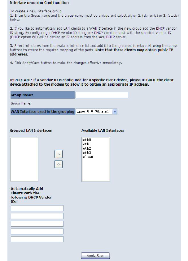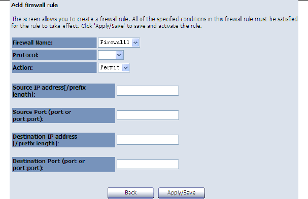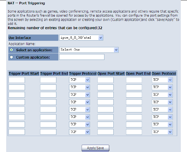 After finishing setting, click the Save/Apply button to save and apply the settings.