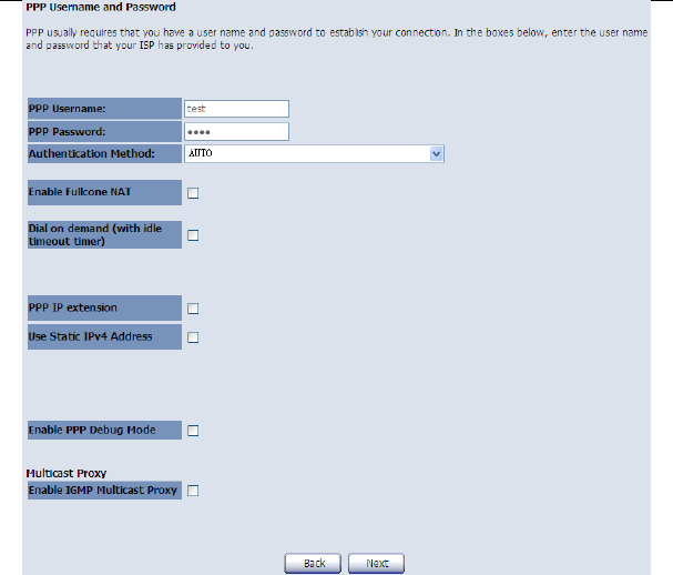 A: Check whether the VPI, VCI, user name, and password are correctly