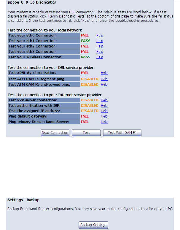 Click xDSL BER Test to test the xDSL Bit Error Rate.