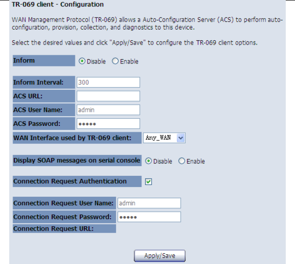In this page, you may configure the parameters such as the ACS URL, ACS