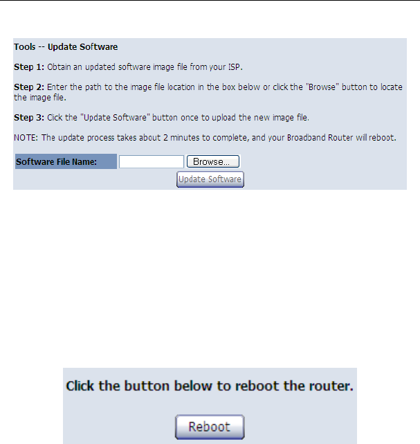In this page, click the Reboot button, and then the router reboots.