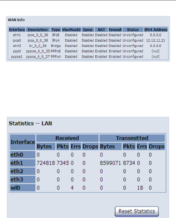 Choose Device Info > Statistics > WAN Service and the following page appears.
