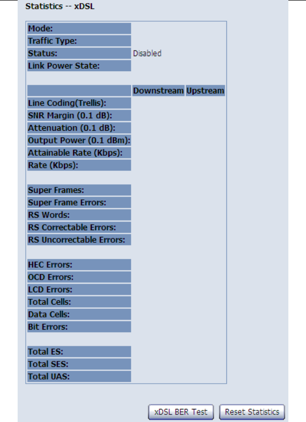 Choose Device Info > Statistics > xDSL and the following page appears.