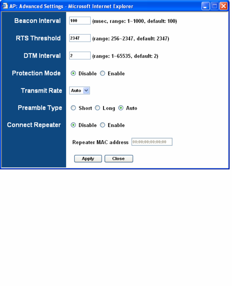 • 802.11g: 6, 9, 12, 18, 24, 36, 48, 54Mbps