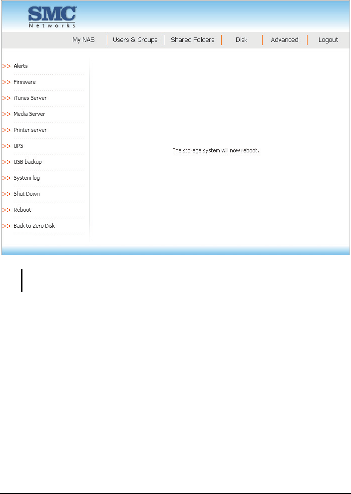 CAUTION: An improper reboot may affect the functionality of storage system in the next