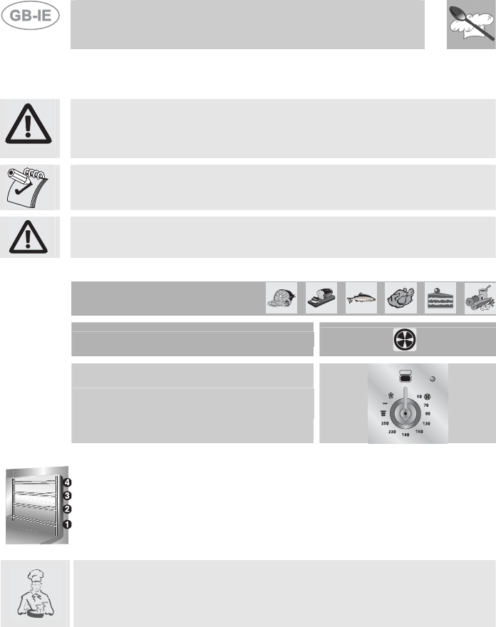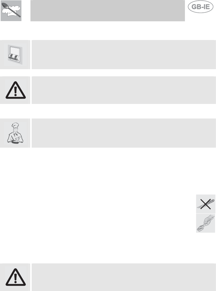 NEVER PUT INFLAMMABLE OBJECTS INTO AN OVEN: IF THEY CATCH FIRE