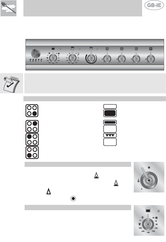 ALWAYS CHECK THAT THE CONTROL KNOBS ARE IN THE POSITION