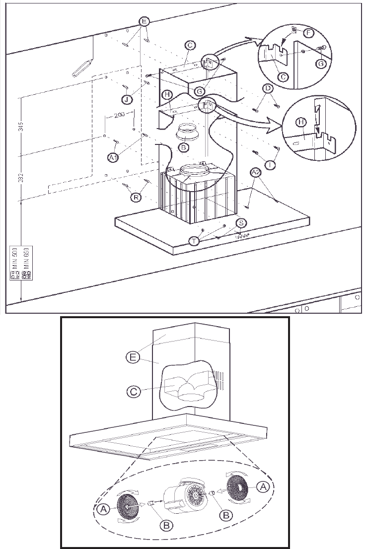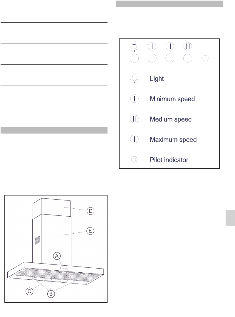 * Zie beschrijving van de eignschappen in het interieur van de afzuigkap.