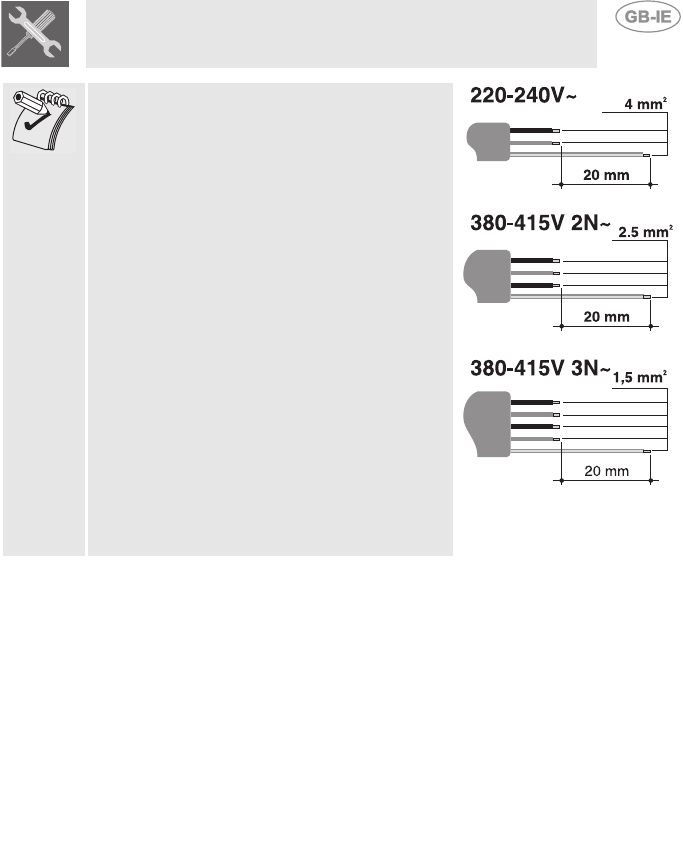 sure that the earth wire is at least 20 mm longer. Fix the power supply lead