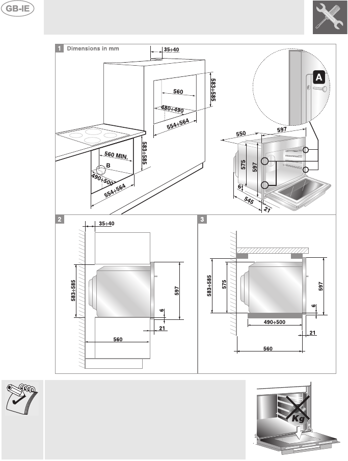 figure 1-3. When installing under worktops incorporating combined hobs, a