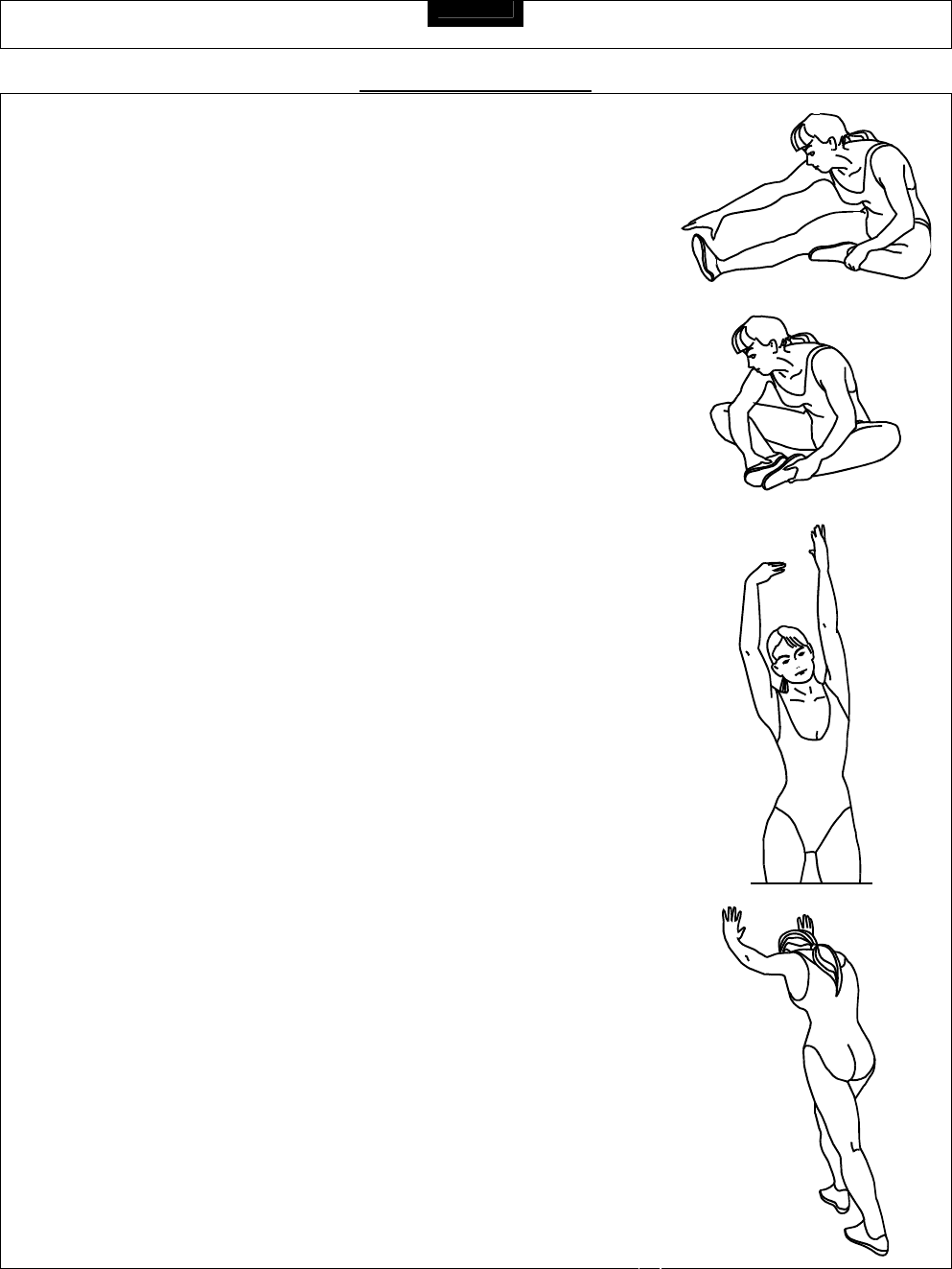 stretch toward your toes. Reach down as far as you can and hold for 15 counts.