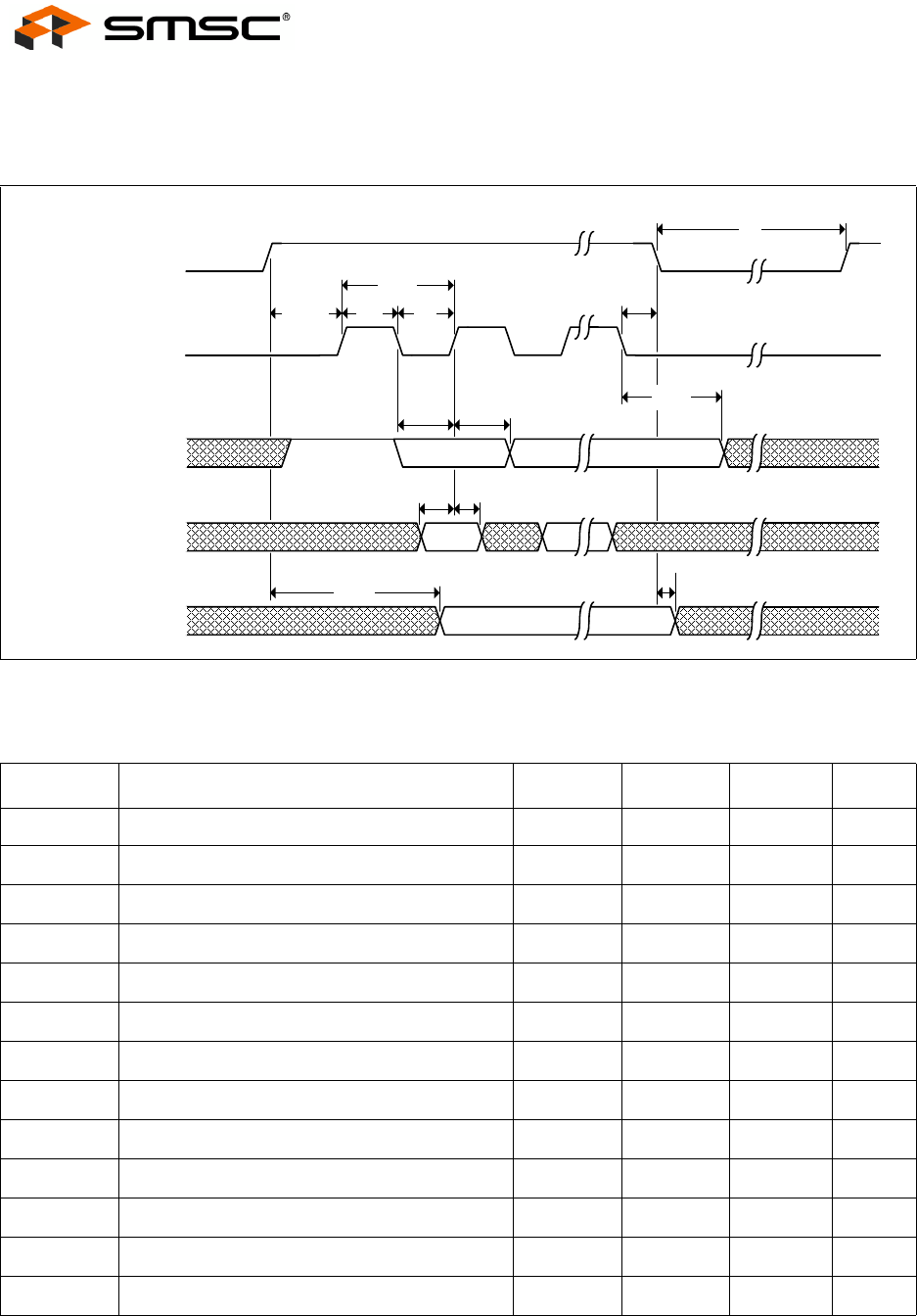 The following specifies the EEPROM timing requirements for LAN9514: