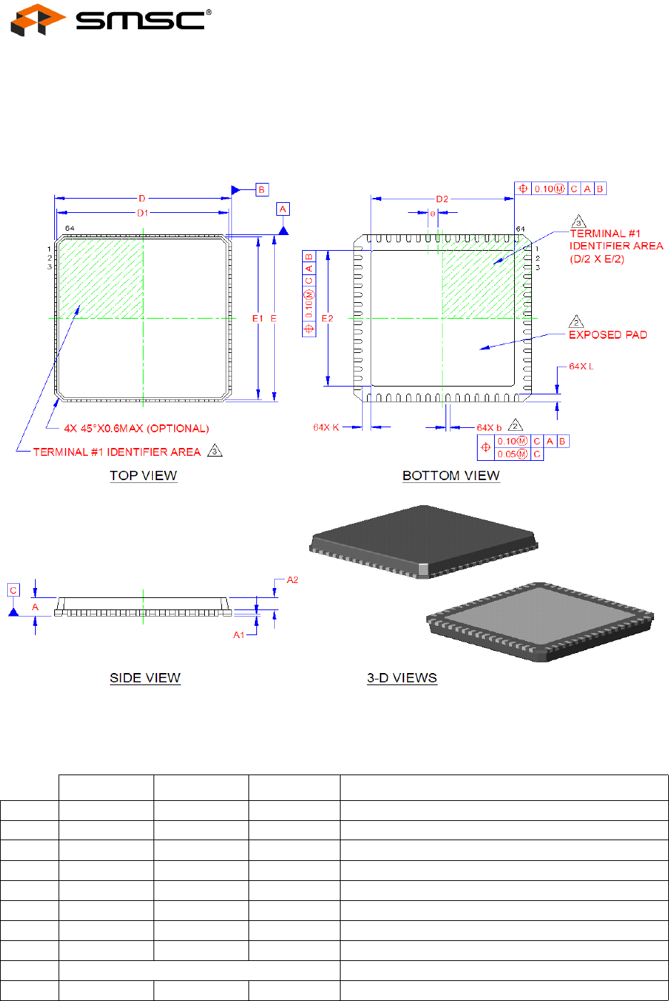 Table 5.1 LAN9514 64-QFN Dimensions