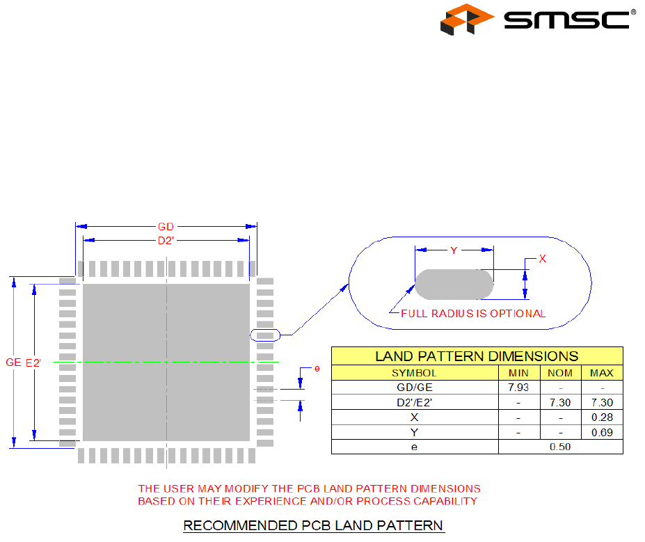 Figure 5.2 LAN9514 Recommended PCB Land Pattern