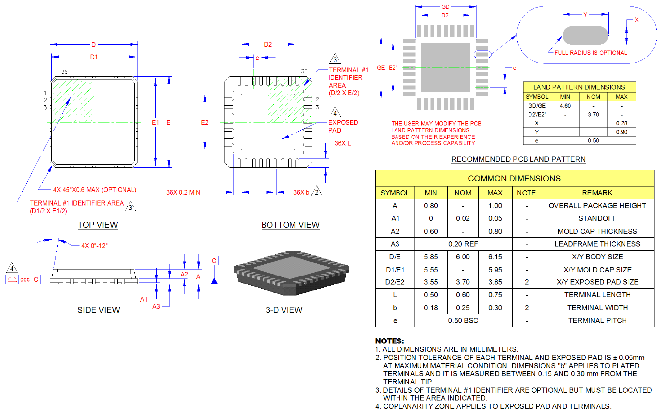 Figure 11.1 36-Pin QFN, 6x6 mm Body, 0.5 mm Pitch