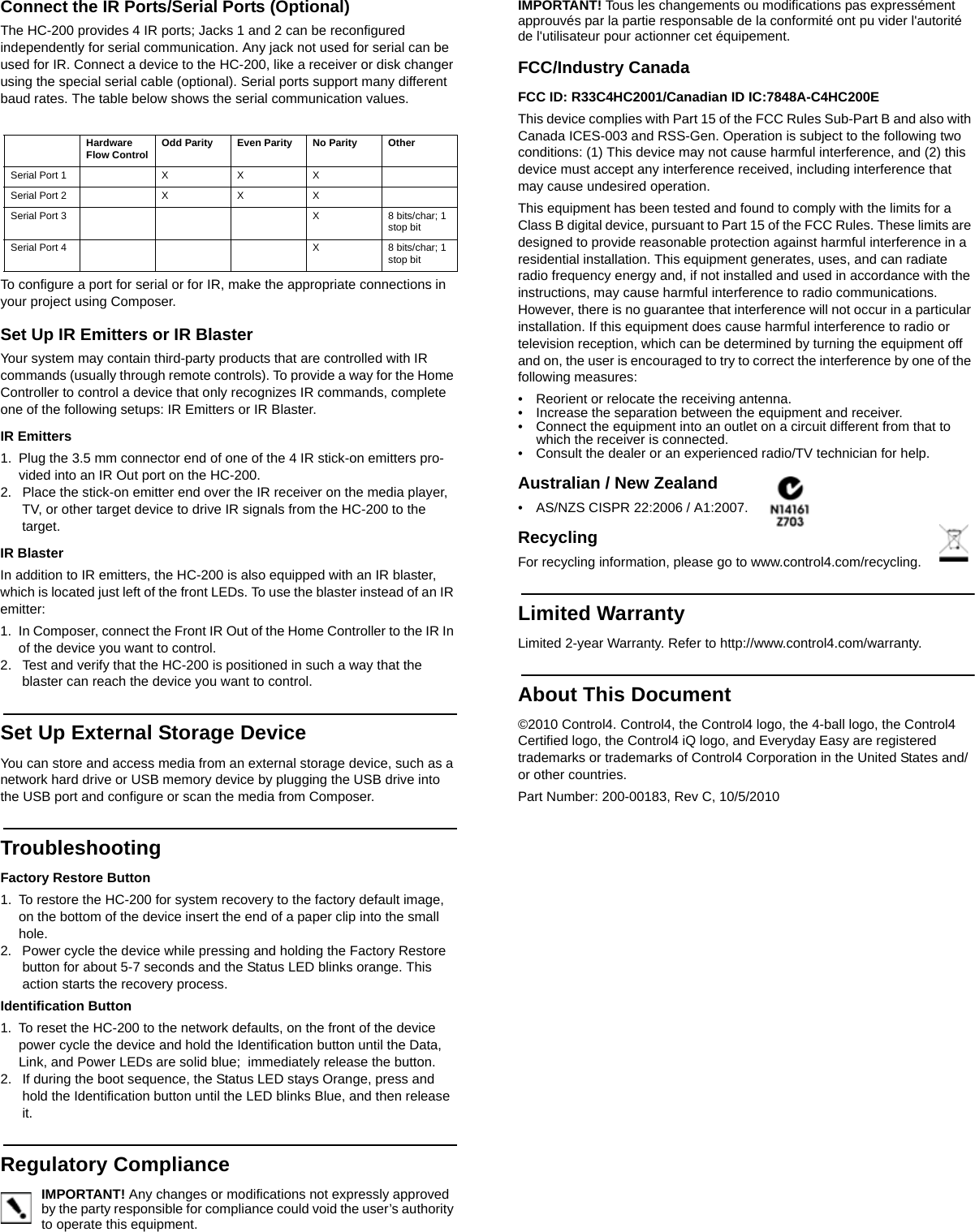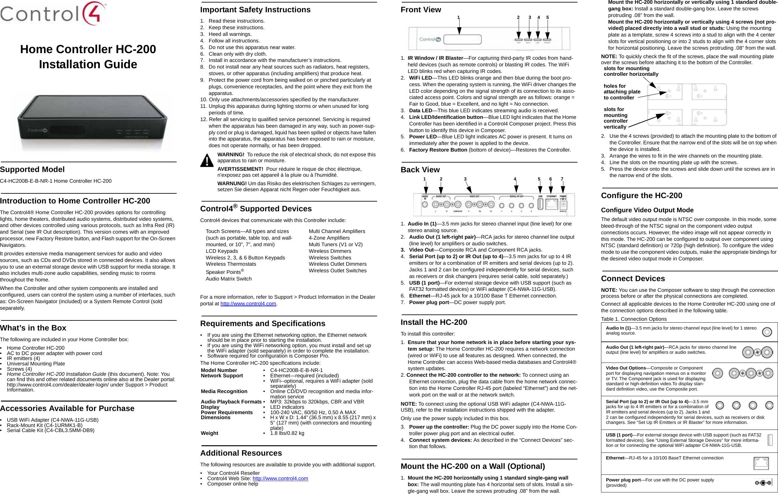 Snap One C4HC2001 Home Controller HC-200 User Manual