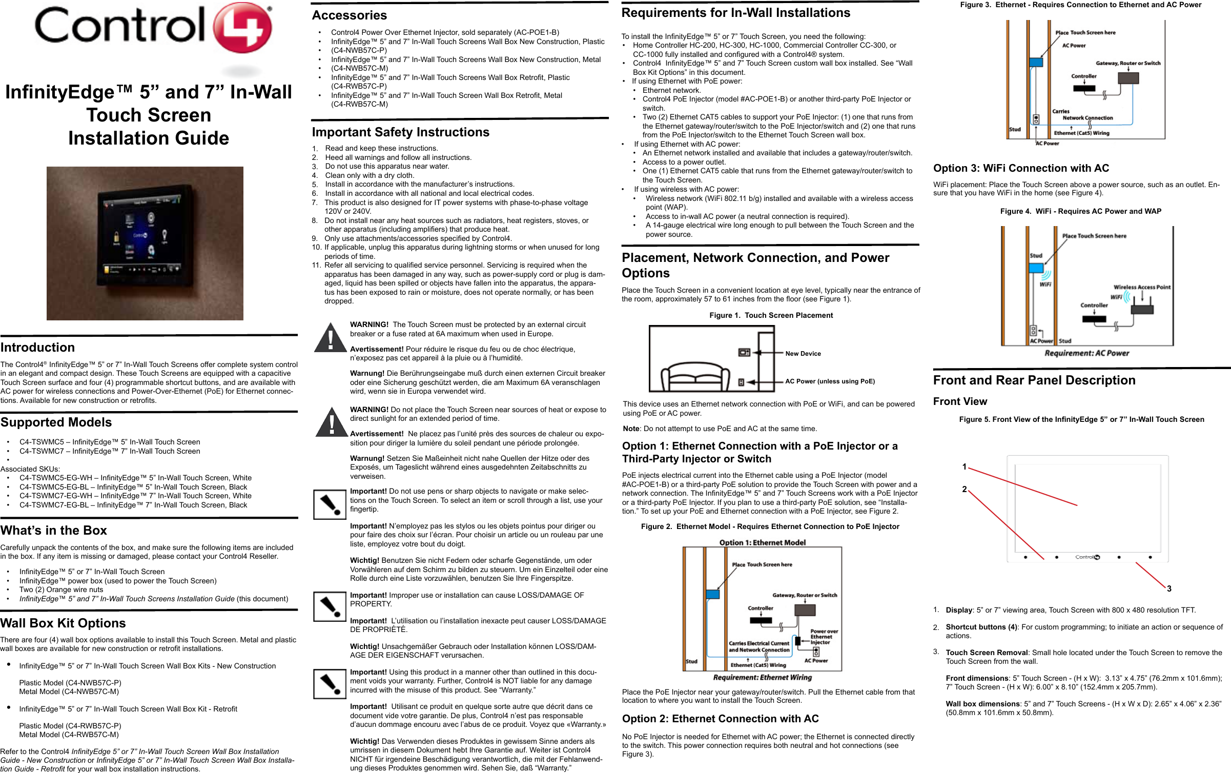 Snap One D2 InfinityEdge Touch Screen User Manual