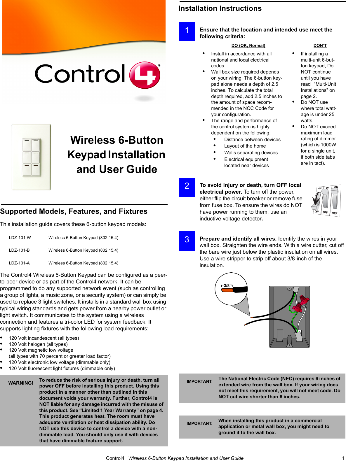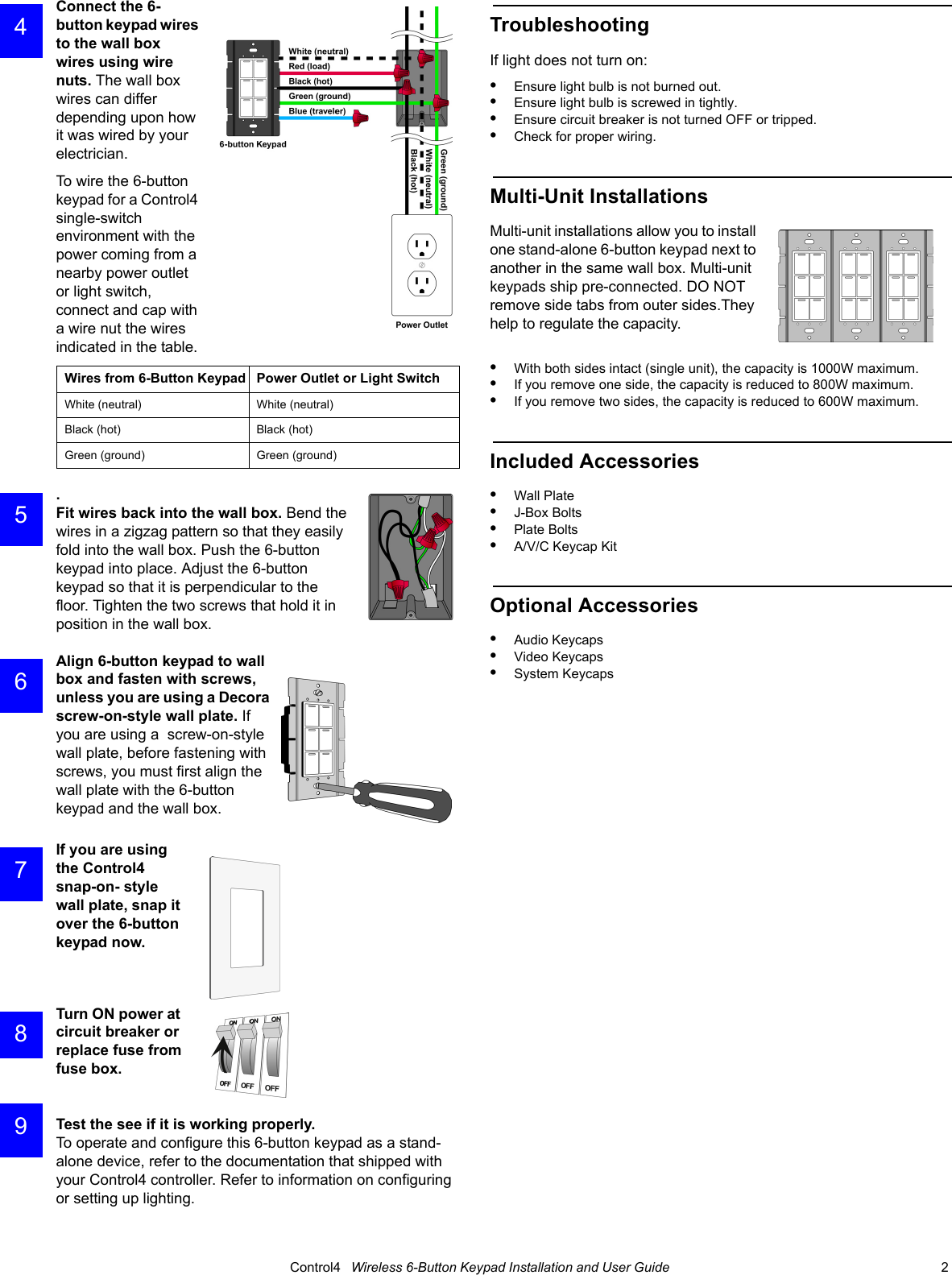 Snap One KPZ6B1 Wireless Keypad Model KPZ-6B1 User Manual Wireless6 ButtonKeypad