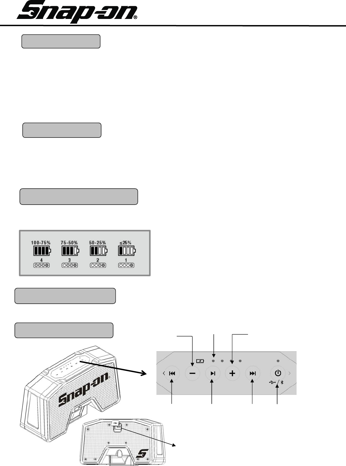 Snap on orporated CTBTS861 BLUETOOTH SPEAKER User Manual