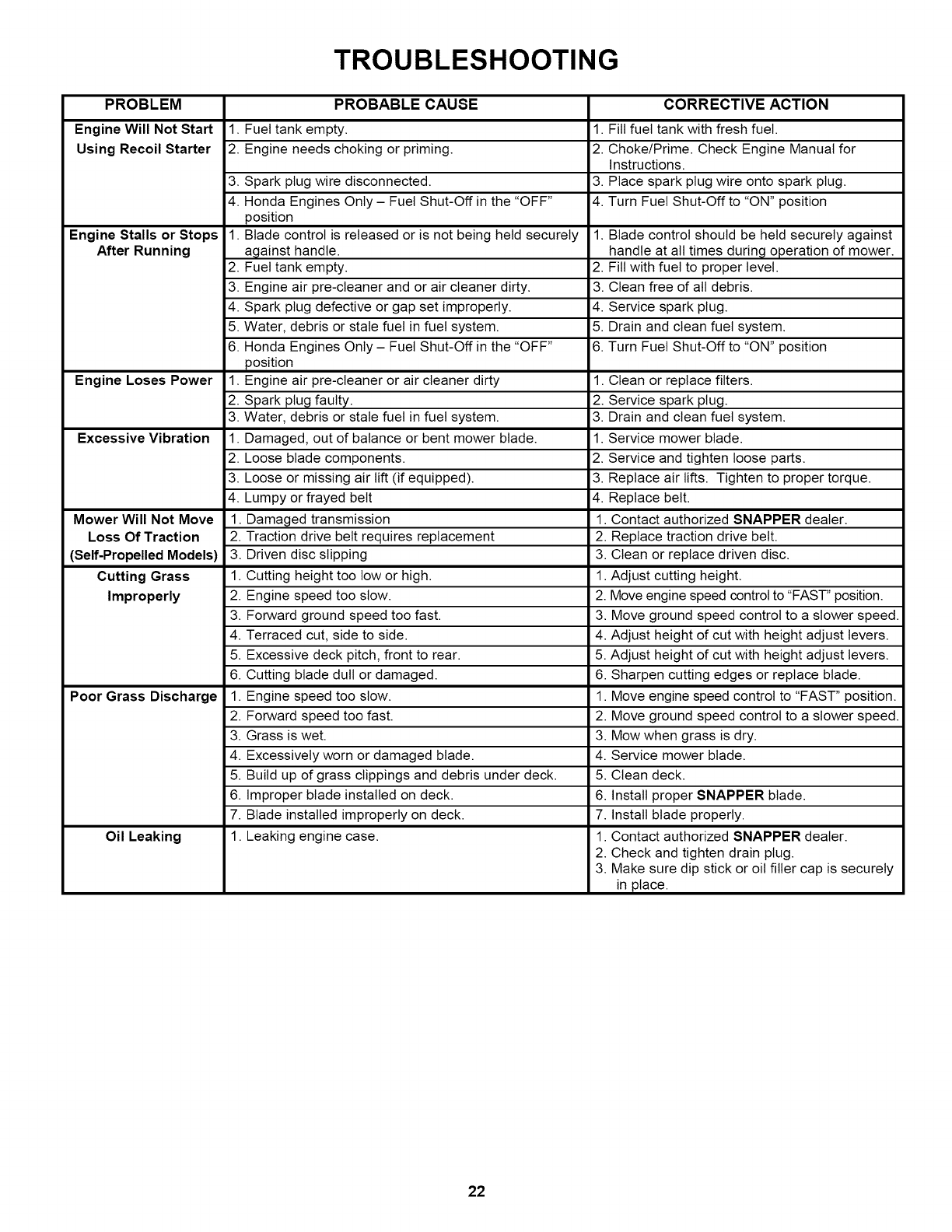 Snapper product, contact your local authorized Snapper dealer or contact Snapper Customer Service at