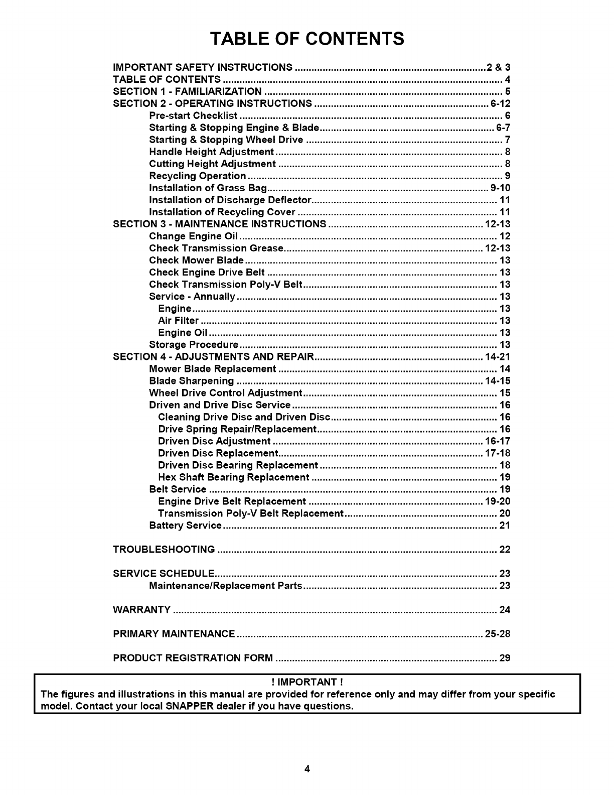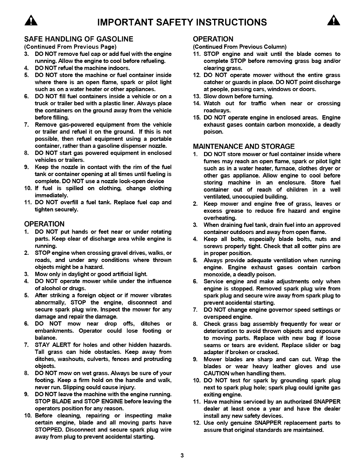 and Instructions In your Snapper Operator's